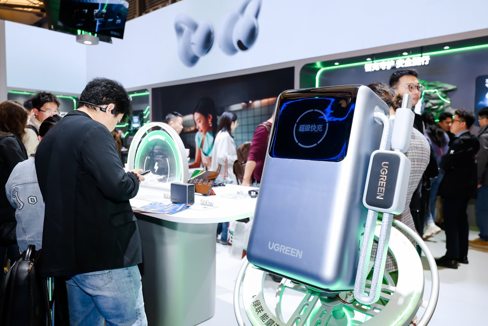 展会现场,绿联与人气数码博主何同学携手推出的45W指尖湃充电器,在极致体积与高效功率间实现完美平衡,更是一经亮相便吸引了众多观众目光。