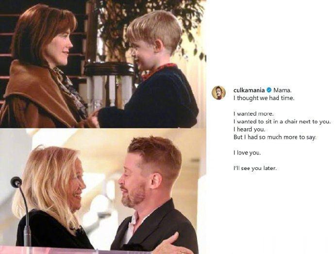 《小鬼当家》主演、在片中与奥哈拉饰演母子的麦考利·卡尔金发文+分享旧照悼念她:“妈妈,我本以为我们还有时间。我想要更多,我想要在你身边的椅子上坐下。我听到了你的话,但我还有很多话想对你说。我爱你,咱们回头见。”
