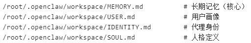 Memory系统相对容易理解,就是“记忆”,它是OpenClaw需要的会话上下文、短期与长期日志、用户偏好人格等等,会分门别类放在相关文件里。“记忆”并不玄虚,直观理解就是一些文件把用户交待的话、用户与OpenClaw的互动,用文件记下来。我用的KimiClaw是在Linux虚拟机的“/root/.openclaw/workspace/”目录里,用四个关键的.md文件,把用户相关的事记下来。还有每天的工作日志,KimiClaw是存在/root/.openclaw/workspace/memory目录里,每天有一个日志文件。这不少常规软件也有,不难理解。