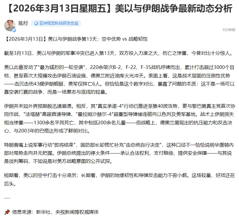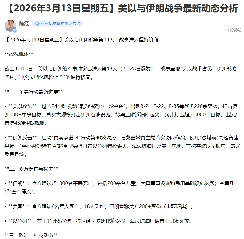 【2026年3月13日星期五】美以与伊朗战争最新动态分析_风闻 (guancha.cn)
